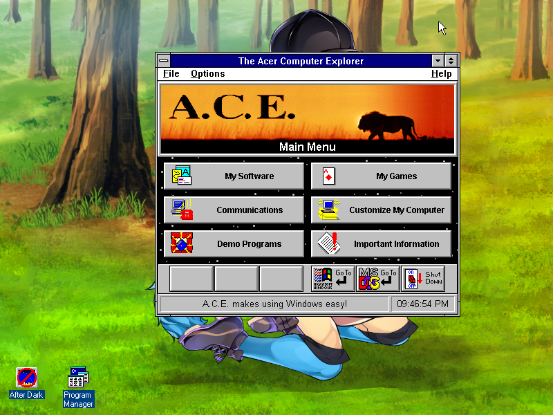 I want to mention a blast from the past of my childhood, as our first computer was an Acer Power, which had Acer Computer Explorer (A.C.E.) (v1.2), with Windows 3.1.