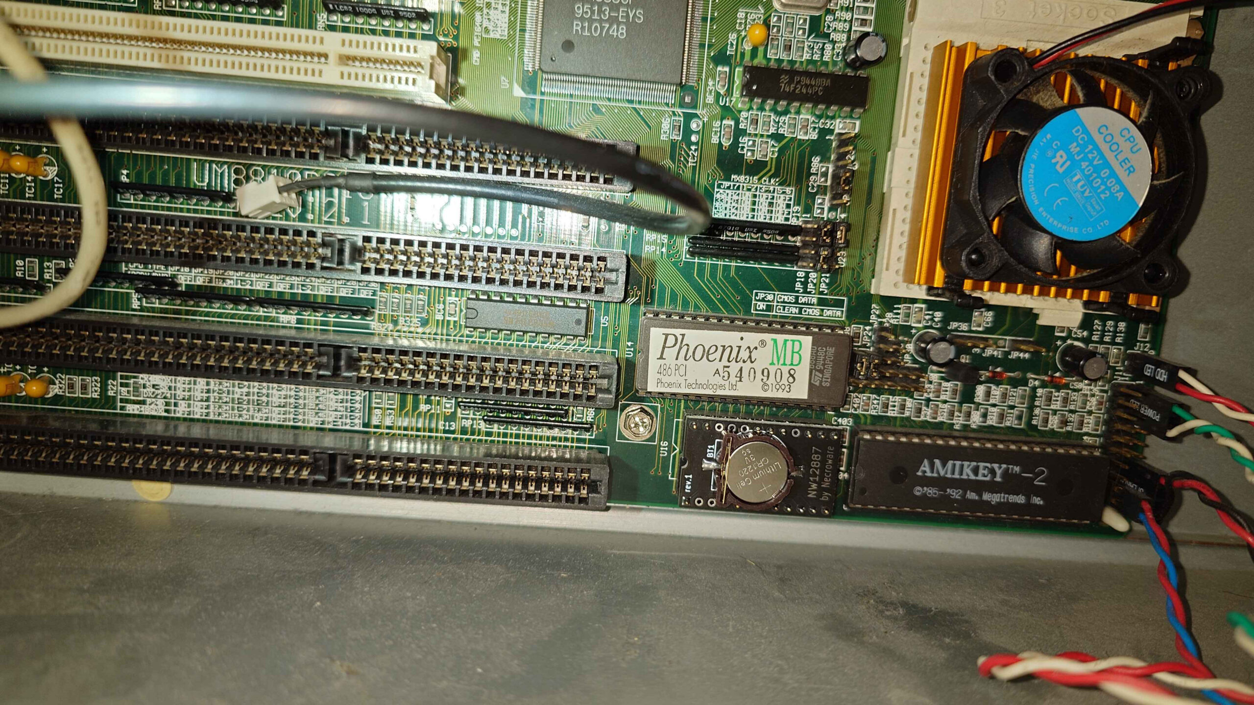 However my next step was to find another motherboard, and fortunately, one came up, which is an Elitegroup Computer Systems, UM8810P-AIO. Which had a nice AMD DX4 100Mhz processor, and 64MB of DRAM. 256k of onboard cache. Which turned out to be pretty sweet, even came with an S3 Trio64 GPU.